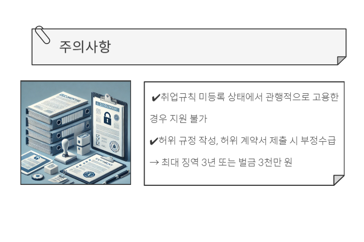 🔸 허위 규정 작성, 허위 계약서 제출 시 부정수급 → 최대 징역 3년 또는 벌금 3천만 원