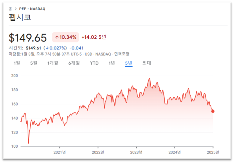 펩시콜라 주가 현황 (출처: 구글 파이낸스)
