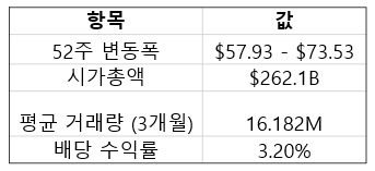 - 52주 변동폭: $57.93 - $73.53