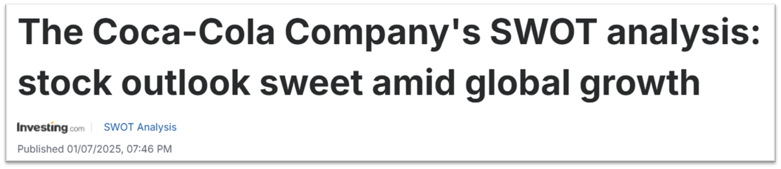 코카콜라의 주가 전망을 어떻게 보는지, 기사들을 통해 요약해보고 알아가는 시간을 갖도록 하겠습니다.