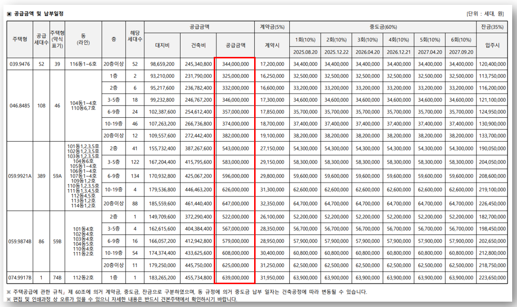 - 잔금 (35%): 204,050,000원 (입주시)