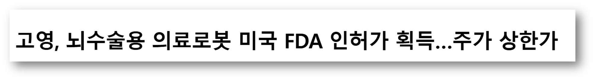 반도체 검사장비 업체 고영이 뇌수술용 의료로봇(Geniant Cranial)의 미국 식품의약국(FDA) 인허가를 획득했다는 소식에 주가가 상한가(전일 대비 30% 상승)를 기록했는데요,