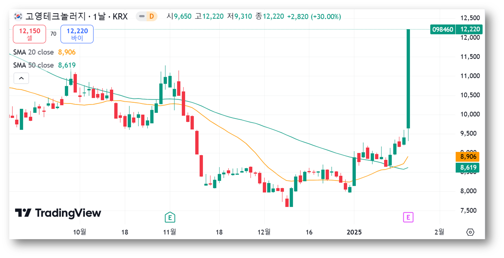 주가는 20일 이동평균선(8,969원)과 50일 이동평균선(8,419원)을 돌파하며, 상승세가 중기적으로도 이어질 것임을 보여주는데요, 골든크로스(20일선이 50일선을 상향 돌파)가 가까워 보이며, 이는 중기적으로 상승 모멘텀이 강해질 수 있음을 암시합니다.