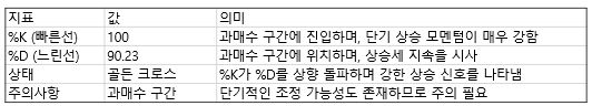 - %K(빠른선): 100.00 %D(느린선): 90.23