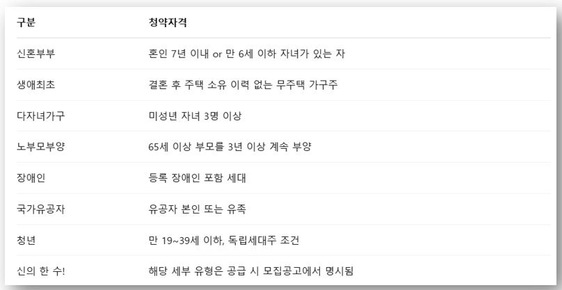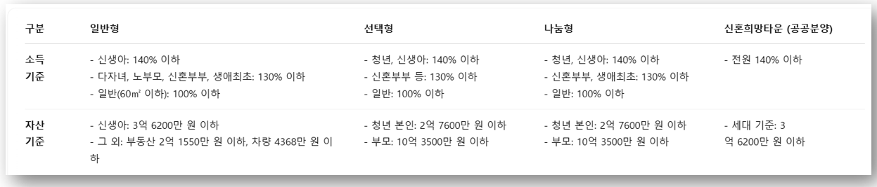 - ✅ 무주택세대 + 청약통장 + 소득·자산 요건만 충족되면 누구나 가능!