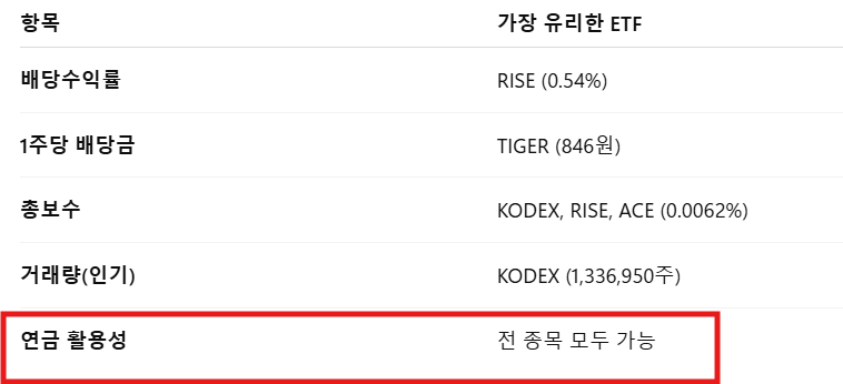 수익률, 배당, 보수, 거래량, 연금 편입 가능성까지 꼼꼼히 비교해