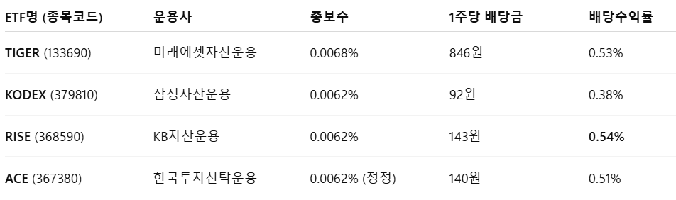 - RISE: 가장 높은 배당수익률 (0.54%)