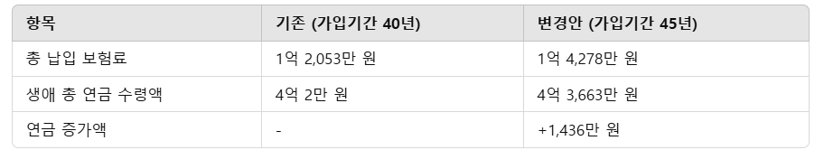 📢 즉, 더 오래 내지만 더 많이 받는 구조로 변경될 가능성이 큽니다.