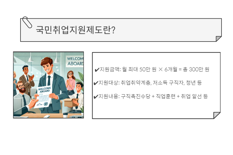 - 지원내용: 구직촉진수당 + 직업훈련 + 취업 알선 등