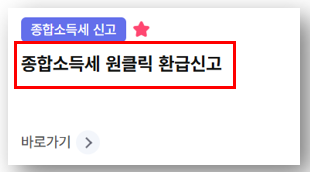- 메인 화면에 보이는 [종합소득세 원클릭 환급신고] 배너 클릭