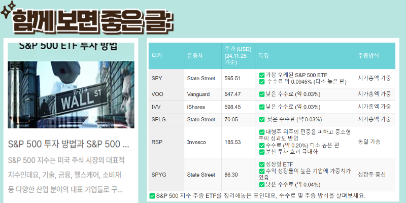 ⬇️미국주식 투자 방법 중 안정적인 수익과 장기적 성장 모두 기대할 수 있는 S&P500 지수에 투자하는 방법에 관련된 글인데요, 한번 보면서 투자 인사이트를 길러보세요⬇️