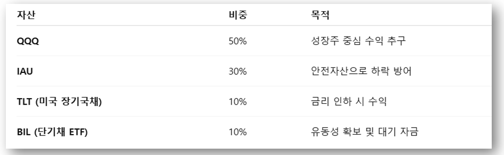 이 구조는 나스닥 급락 시 손실 최소화, 상승장에서도 수익 추구가 가능한 균형형 자산배분 전략입니다.