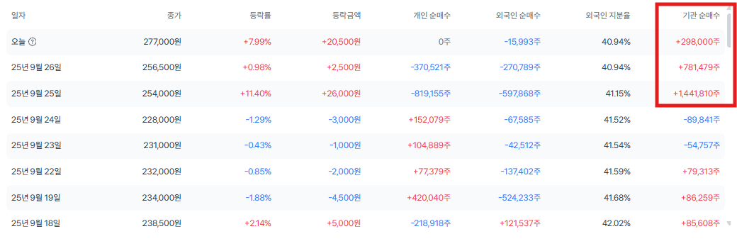 ➡ 기관이 주도하는 구조적 수급 전환 가능성으로 해석 가능