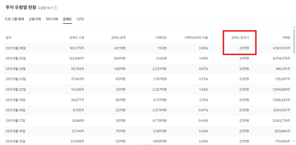 지금 시장에선 공매도 평균 단가가 약 25만 원 수준으로 분석되고 있습니다.