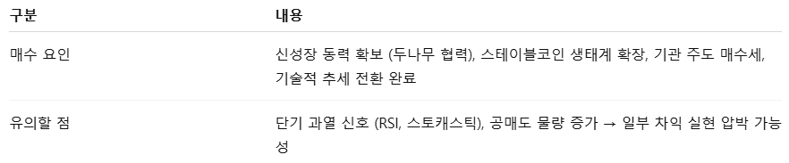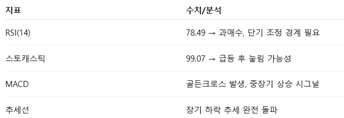 다만, 단기적으로는 조정 또는 눌림목 가능성도 열어두어야 합니다.