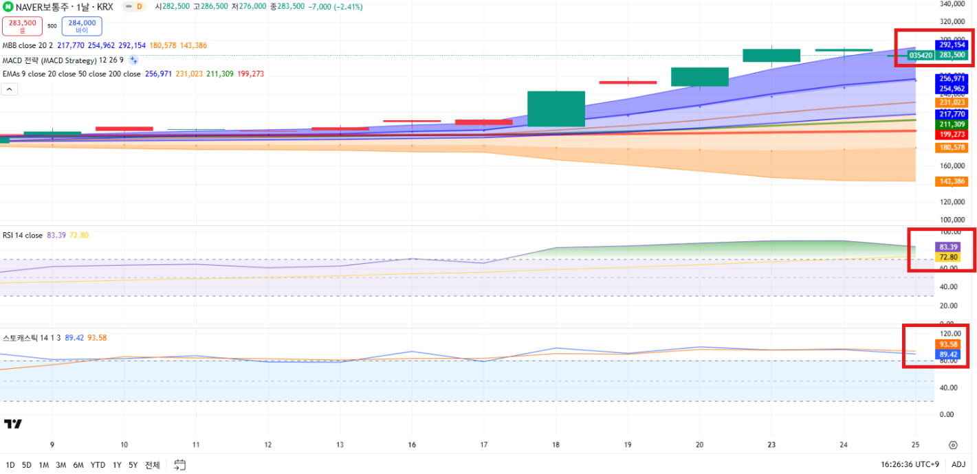 - RSI(14): 83.39 → 과열 구간 진입