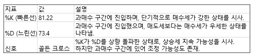 - %K(빠른선): 81.22/ %D(느린선): 73.40