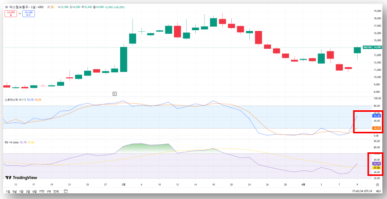 - 스토캐스틱 지표, 과매도 구간에서 골든크로스 형성