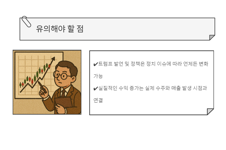 - 트럼프 발언 및 정책은 정치 이슈에 따라 언제든 변화 가능