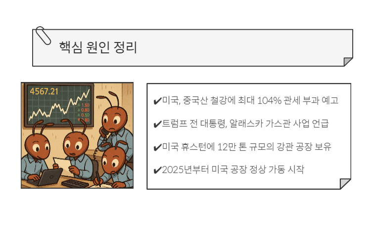 넥스틸은 단기 이슈와 중장기 펀더멘털이 결합된 종목으로, 트럼프 관련 테마주 중 대표적인 수혜주로 꼽힙니다.