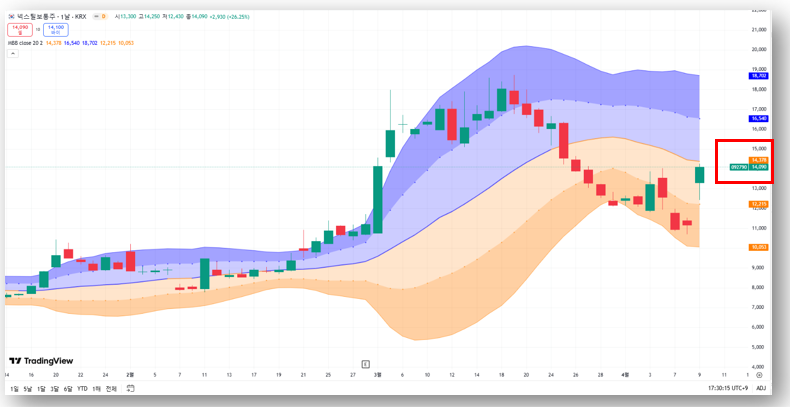 - 볼린저밴드 하단에서 반등 후 중심선 돌파