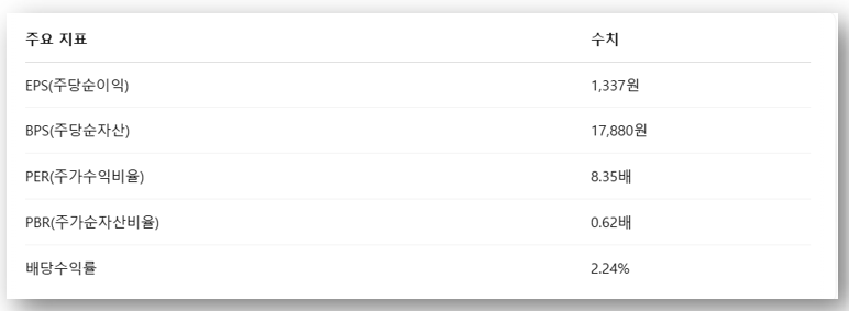 PER과 PBR 모두 낮은 수준으로, 현재 주가는 저평가 영역으로 평가되고 있습니다.