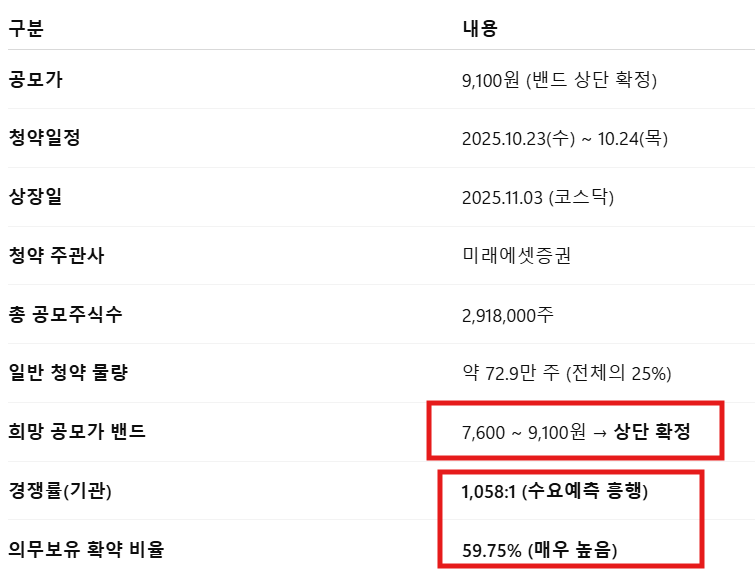 올해 IPO 제도 변경 이후 두 번째로 높은 확약률로, 수급 안정성과 초기 상승 가능성이 기대됩니다.