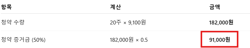 ※ 참고: 일부 증권사는 청약 수수료(예: 2,000~3,000원 내외)를 별도 부과하므로 실질 입금액은 약 93,000~94,000원이 될 수 있습니다.