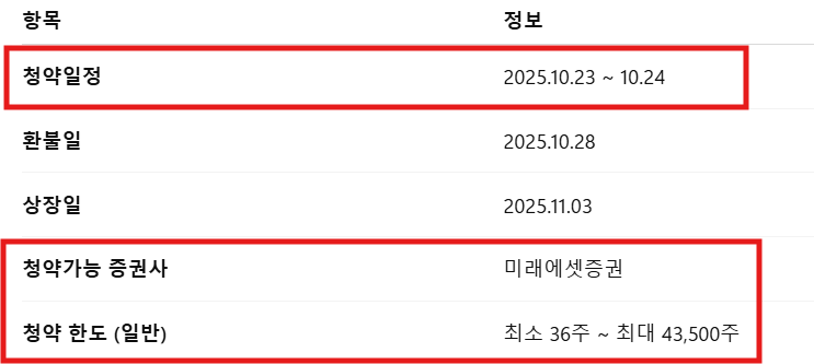 청약 일정은 10.23~24 이틀이니, 관심 있으신 분들은 미래에셋증권 계좌 개설하시고, 청약에 도전해보세요!