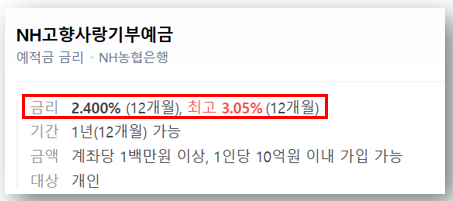 ① NH고향사랑기부예금 – 가장 높은 금리