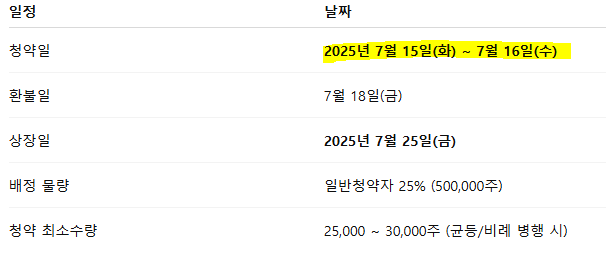 • 상장일: 7월 25일