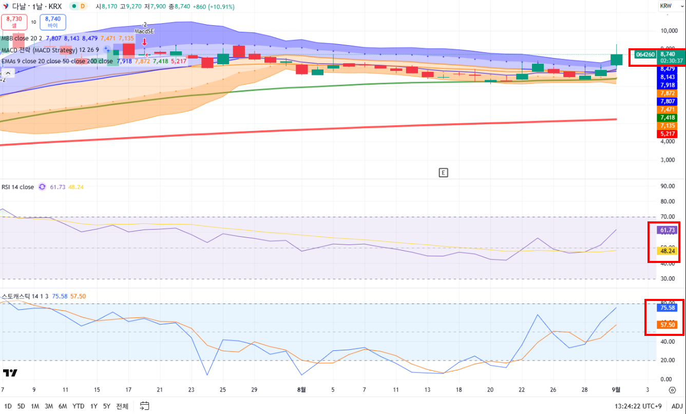 • 9월 1일 장중 +10% 이상 상승, 8,700원 돌파