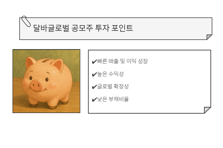 달바글로벌은 실적과 성장성 모두 우수하고, 해외 매출 비중도 빠르게 늘고 있어 중장기 기대가 큽니다.
