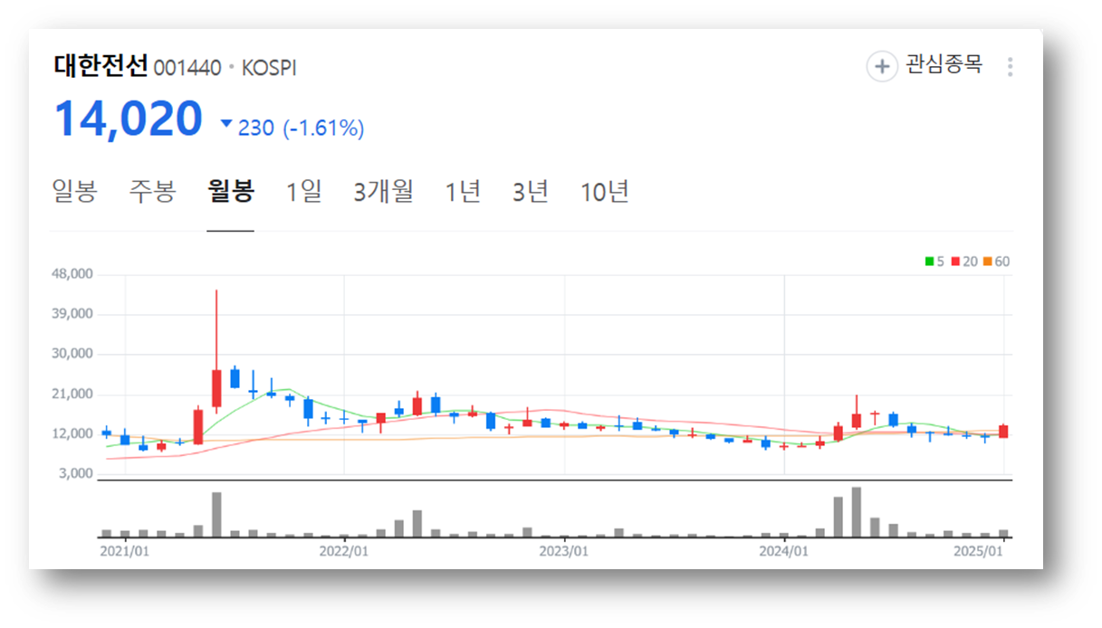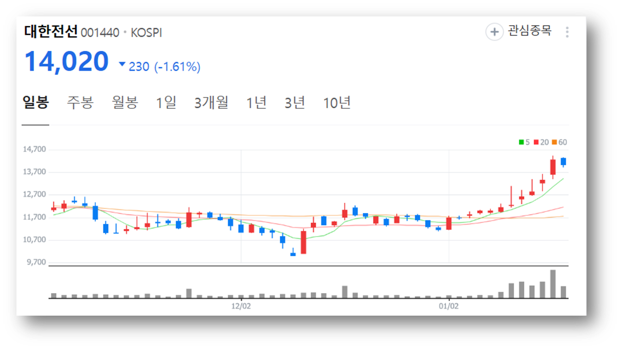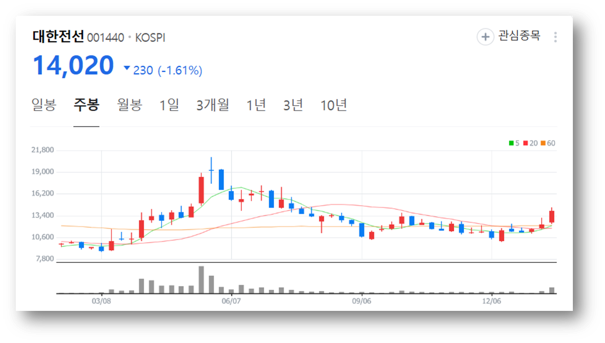 2.대한전선 주가 현황