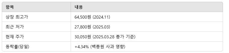 - 상장일: 2024년 11월 코스피 상장