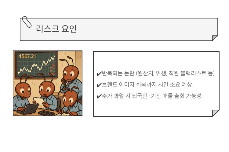 - 반복되는 논란 (원산지, 위생, 직원 블랙리스트 등)