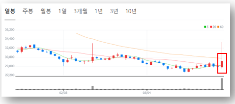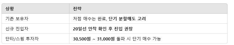 - 다음 저항선은 30,500원 ~ 31,000원 구간