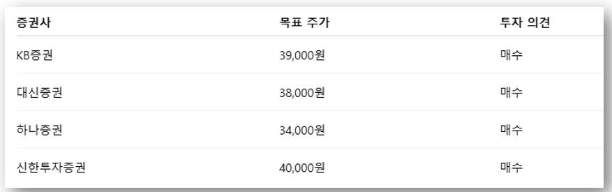 ▶ 평균 목표 주가는 약 37,750원