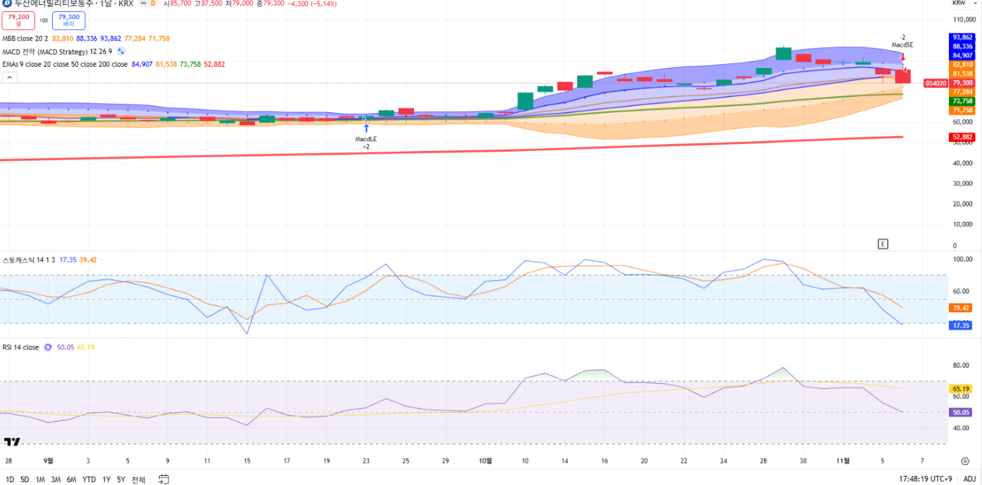 - RSI: 50.05 (중립), 스토캐스틱: 17.35 (과매도)
