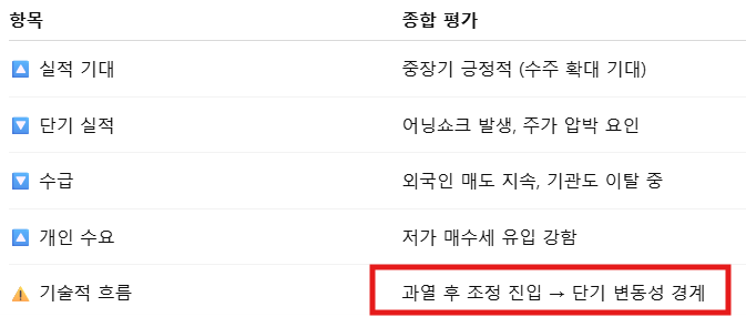 중장기 수주 기대감은 유효하므로, 저점 분할매수 전략이 유리해 보입니다.