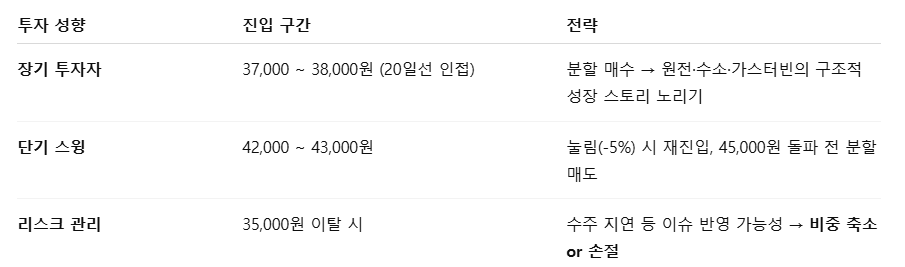 👉 모멘텀 투자자: 뉴스 흐름 + 거래량 보며 단기 대응, 손절선은 반드시 명확히 설정(예: 종가 35,000원 이탈)