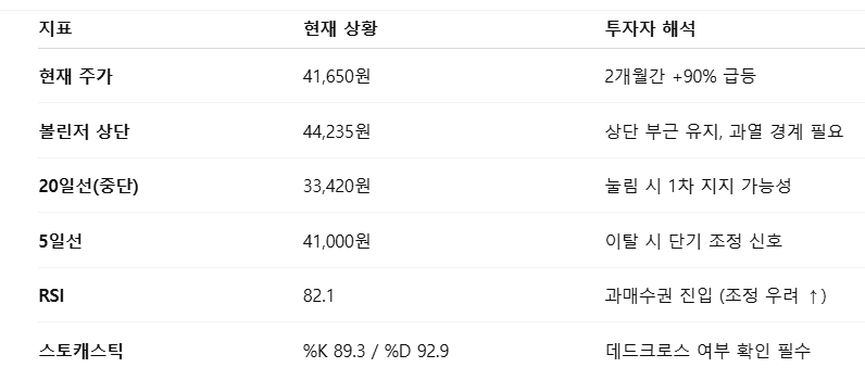 👉 보수적 투자자: 조정(35,000원대 이하)까지 기다렸다가 이익 기반 밸류에이션 정상화 구간(PER 40~50배)에서 재검토