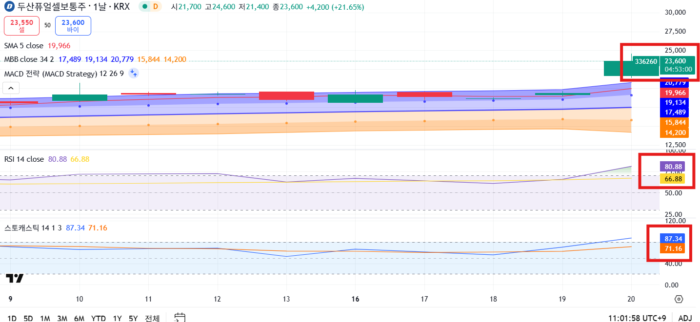 두산퓨얼셀(336260) 주가가 장중 20.88%가량 급등하고 있는데요, Fomo가 오시나요?