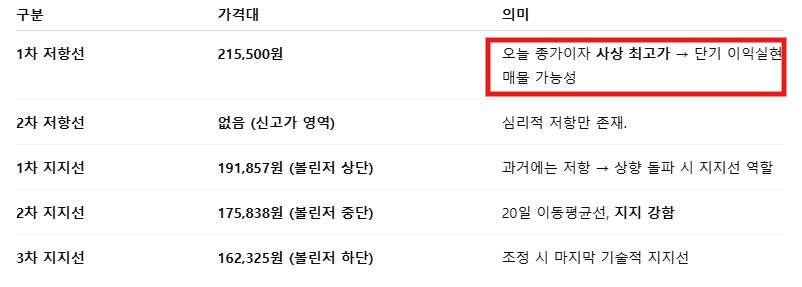 ✅ 215,500원 돌파 여부가 향후 방향성 결정의 핵심