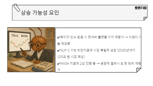 - MASH 치료제 2상 진행 중 → 긍정적 결과시 또 한 번의 재평가