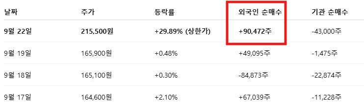 - 현재가: 215,500원 (상한가)