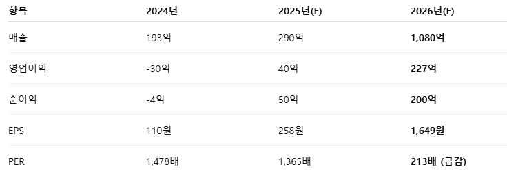 - 2025년까지는 실적 규모가 작고 PER이 고평가