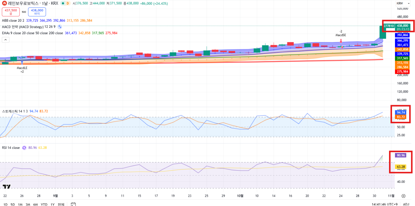 - RSI: 80.15 / 스토캐스틱: 96.27