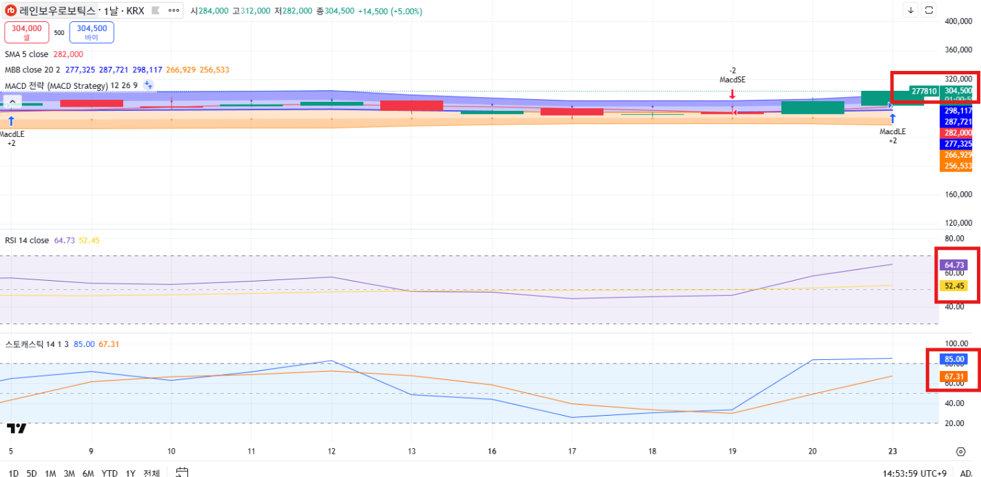 - 스토캐스틱: 85.00 / 67.31 → 강한 매수 시그널