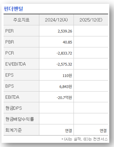 ✅ 수익성 지표(PER, EV/EBITDA)는 매우 높은 수치로 현재 실적 대비 주가가 고평가 상태